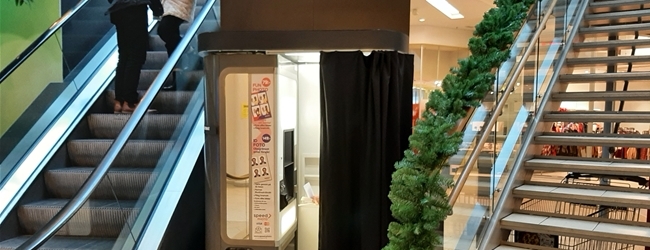 Photo booth is located behind Allums information disk at level 1