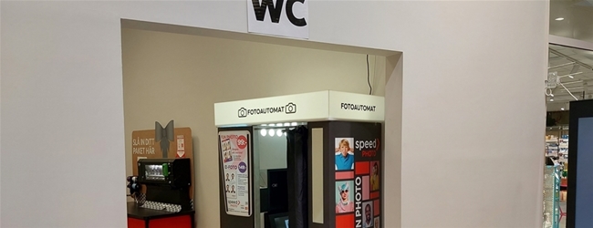 Står mittemot kassorna till Ica maxi. Där kundtoalett och paketinslagsmaskin finns.